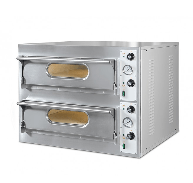 Horno eléctrico 2 cámara para 8 pizzas de 36 cm, piso refractario doble termostato.