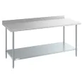 Mesa de trabajo de acero inoxidable 183 x 76 cm. con estante inferior y espaldar posterior de 5 cm.